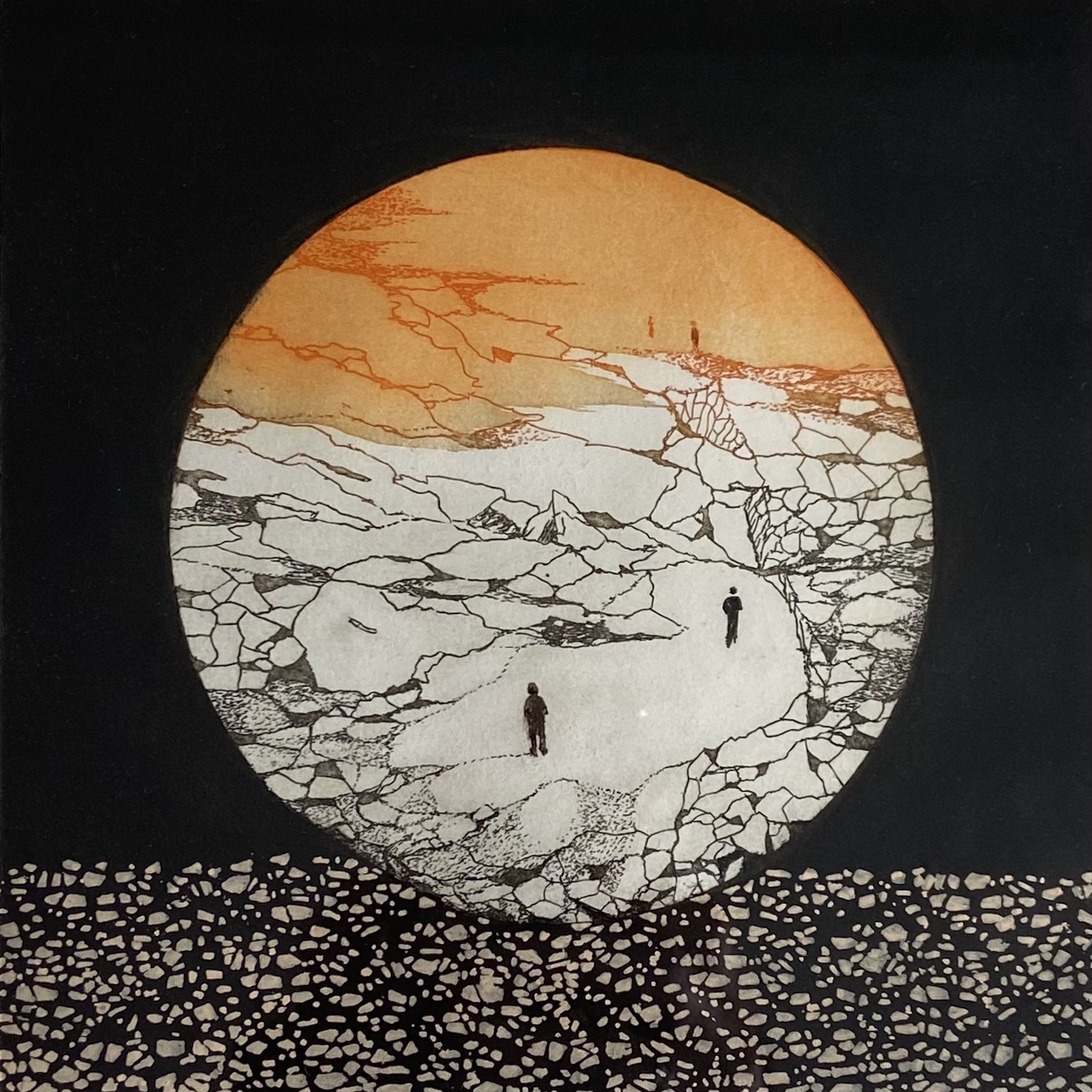 Cette série réalisée sur des plaques de zinc ou de cuivre, s’articule autour de la construction d’un espace ouvert sur un horizon lointain.
